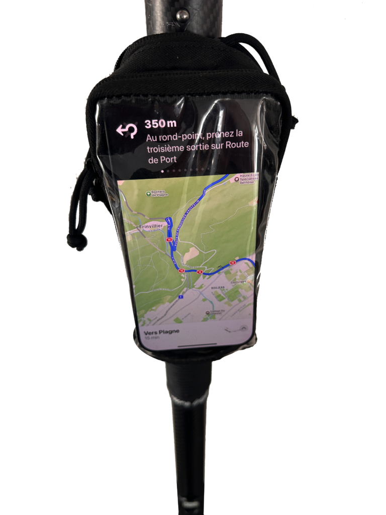 Fixez la poche avec des sangles et insérez le parapluie grâce au système magnétique — même avec des gants.